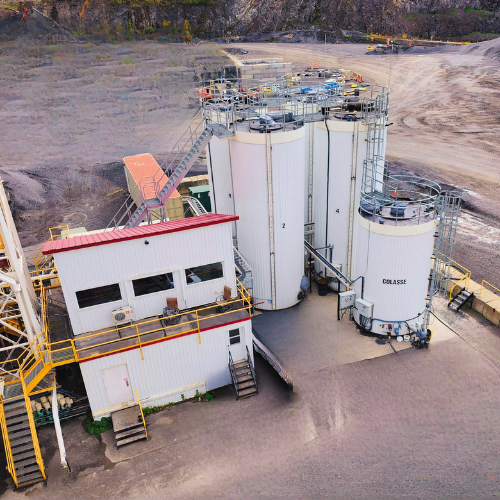 to your mixing tower. It features vertical tanks, heating systems, a unloading station, and full automation.